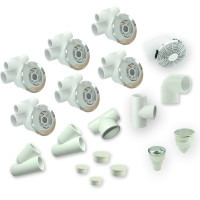 Includes six D90mm jets, air controller, push switch, suction fitting, large and small plugs, a 90° elbow, two Y-shape joints, one pump tee and a standard tee—everything needed for the jet system 1 WO.