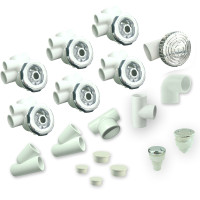 The system includes a Water Pump for powerful Water Jets, the Suction is used for circulation, the Water Heaters maintains the water temperature, the air regulator and switch are used to adjust the intensity of the massage, and the Hoses & Fittings ensure the stable operation of the various components of the system.