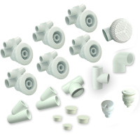 Jet system 11 includes six D90mm white hydro jets, matched air and suction controls, and all required fittings—designed for spa systems that demand both strong performance and cohesive visual style.