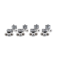 "shower pulley Material:ABS Finished:Chrome 4 pcs up double wheel 4 pcs down double wheel diameter:20-26mm"