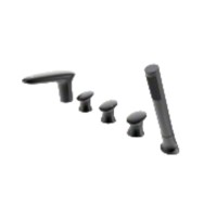 5-hole bathtub mixer 1pc cold water valve,1pcs hot water valve,1pc diverter valves 1pc hand shower and shower holder 1pc Spout 1.5m stainless steel shower hose 2pcs cold and hot water hose 3PCS S.S flexible hose Black finished